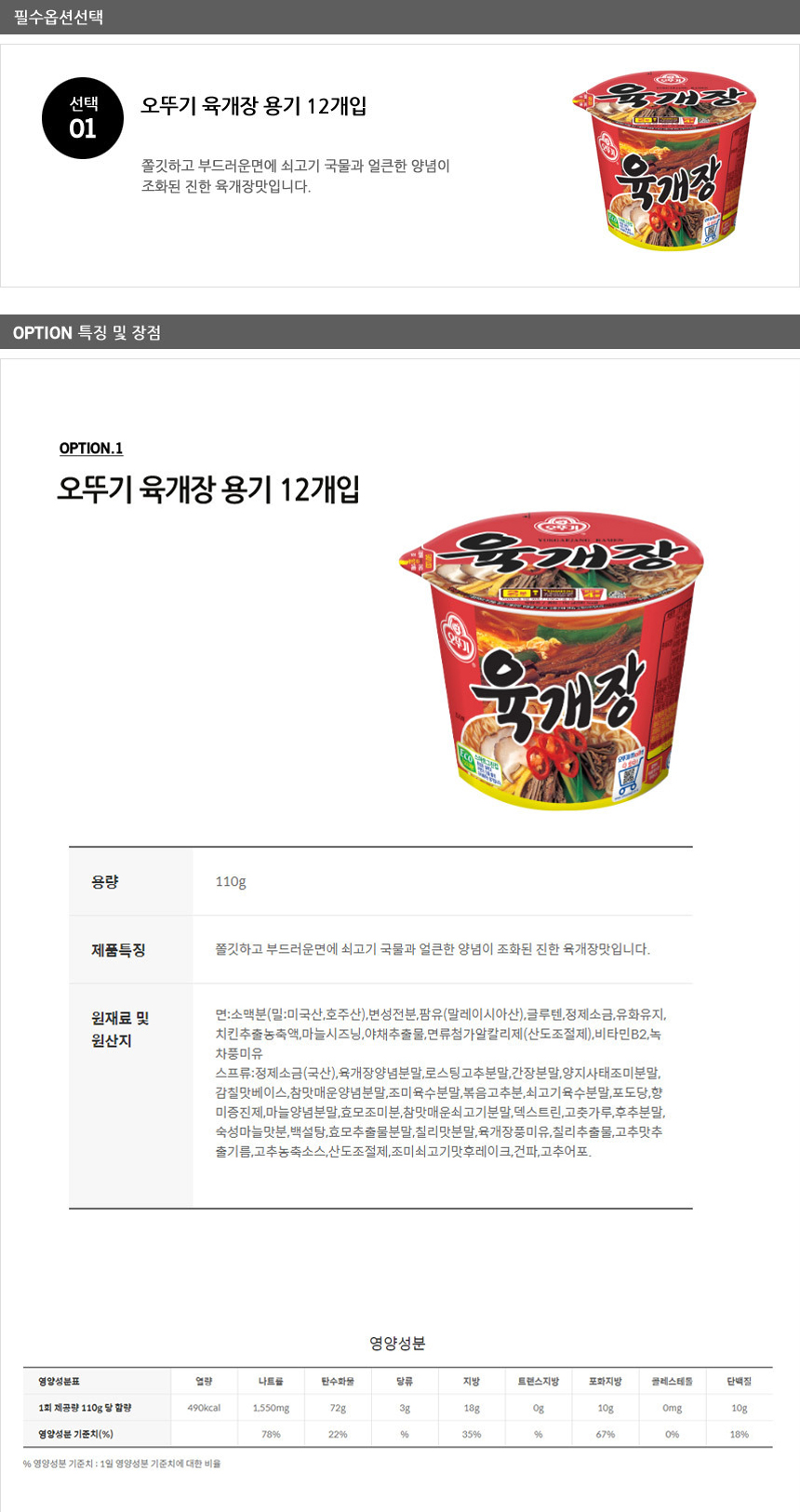 [오뚜기] 육개장 용기 12개입/컵라면