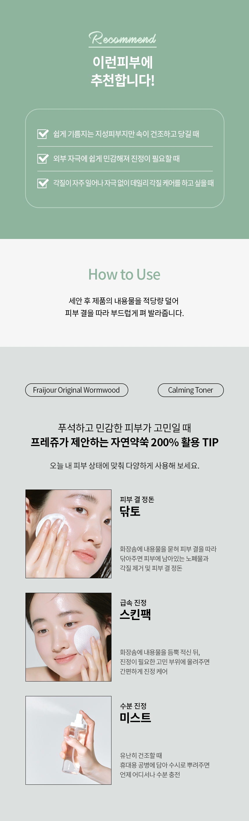 "각질,진정,보습 3중 케어"