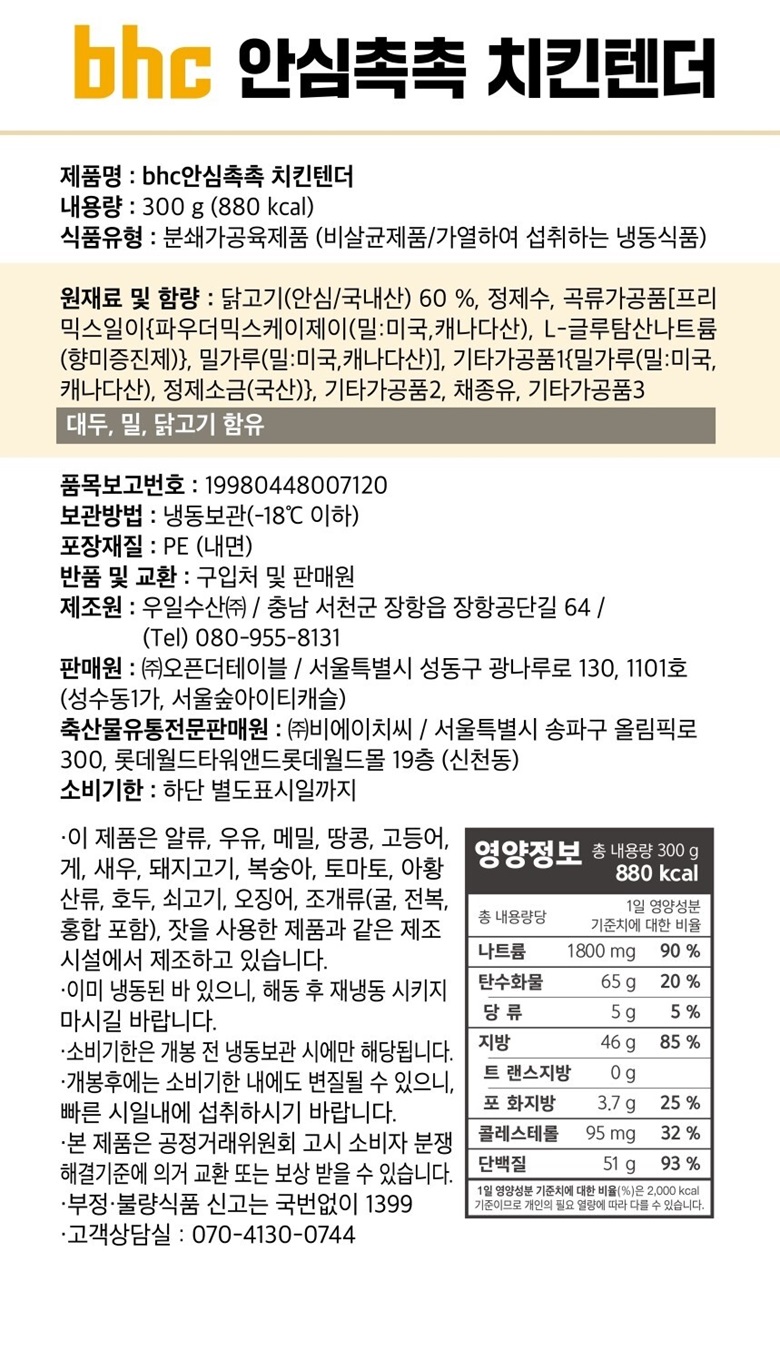 [BHC] 치킨 텐더 300g x 2 (600g)