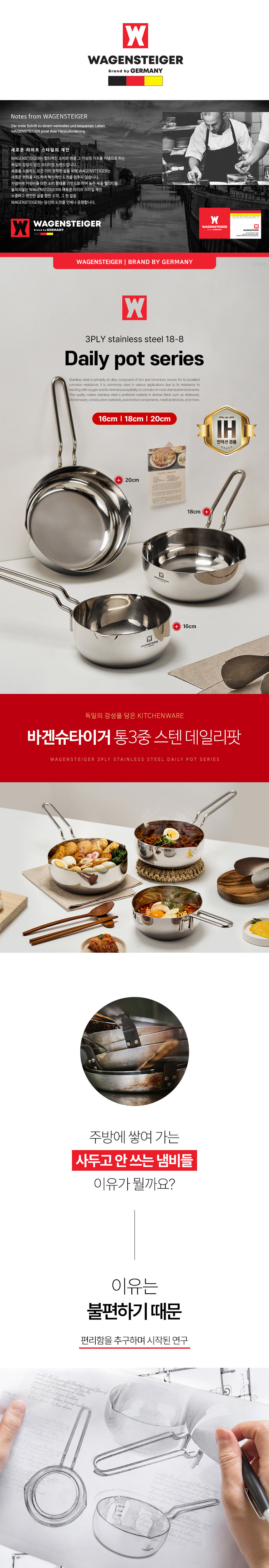 바겐슈타이거 통3중 스텐 304 IH 데일리팟 16cm